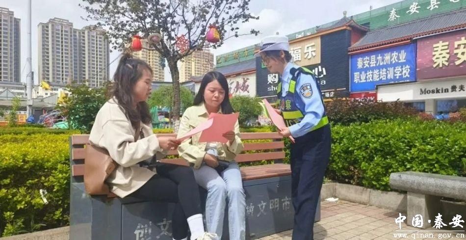 新天水讯 据秦安县融媒体中心消息 4月22日,秦安县公安局交警大队组织宣传民辅警深入兴国文化广场,积极开展交通安全宣传活动,把交通安全法律法规普及给广大群众。