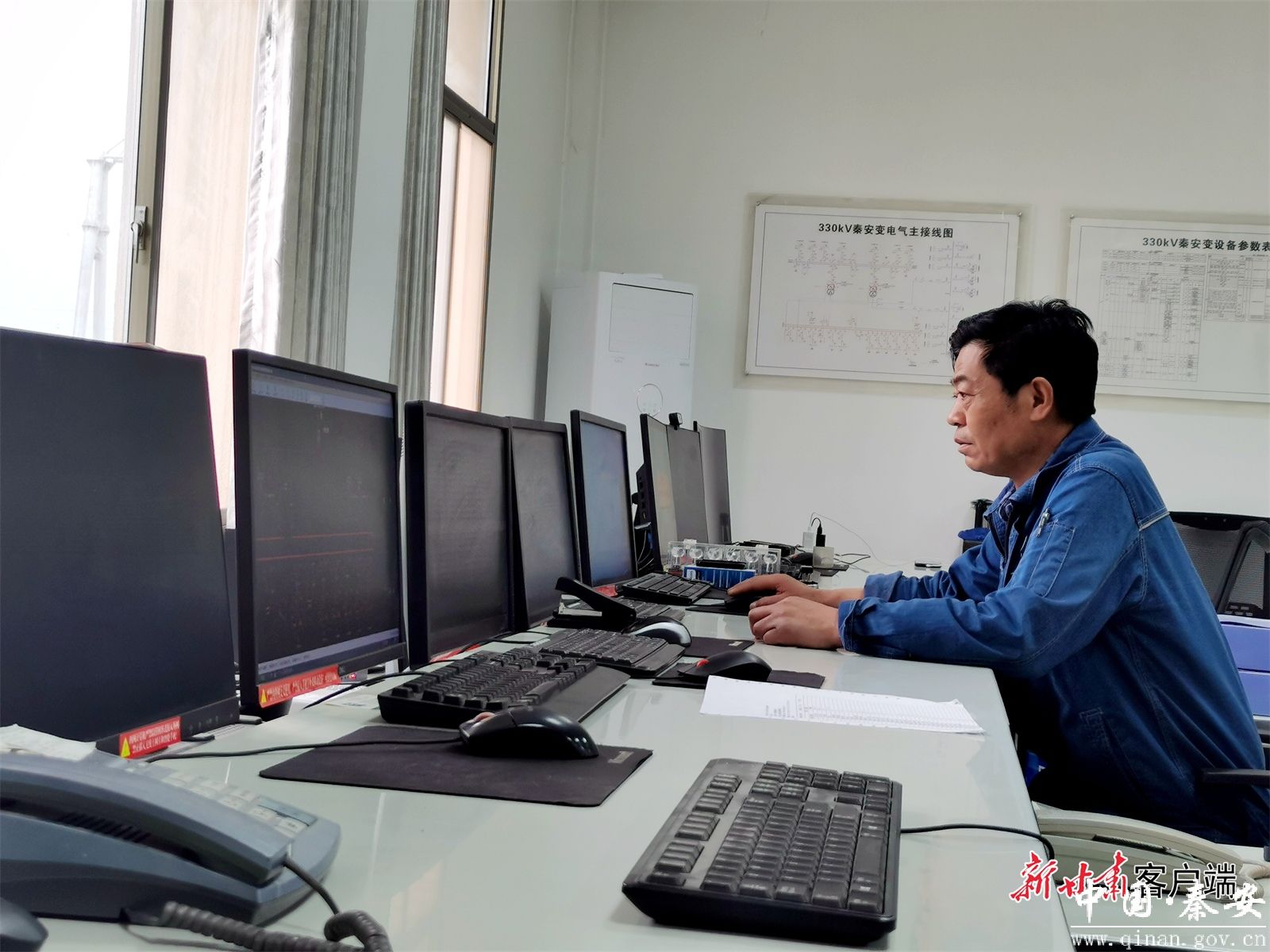 330千伏秦安变电站站长李顺苍在主控室内远程操控电力设备。本文图片由新甘肃·甘肃日报记者 王占东 摄