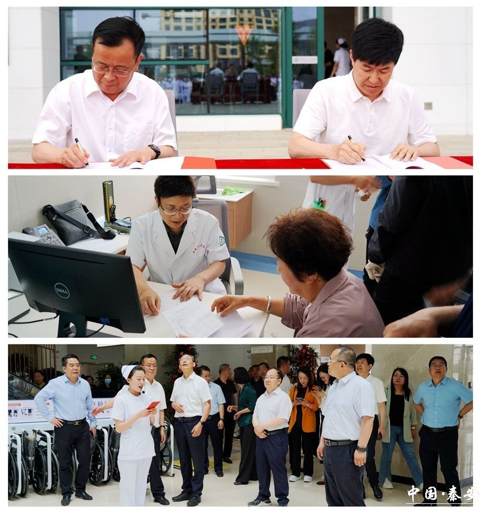 仪式上,介绍了县医院项目情况;天津市津南医院与秦安县人民医院签订“组团式”帮扶协议;并为名医工作室“岳中瑾名医工作室”“邓强名医工作室”“王金羊名医工作室”“牛军强中医工作室”揭牌。