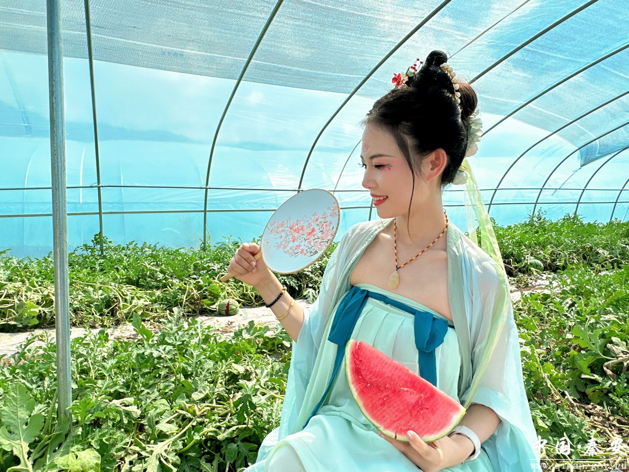 盛夏的秦安县,蜜桃、白脆瓜迎来丰收,陆续抢“鲜”上市,放眼望去,色泽鲜艳,让人馋涎欲滴,空气中似乎也荡漾着甜甜的水果香味。(伏璐芳 张黎明 摄)