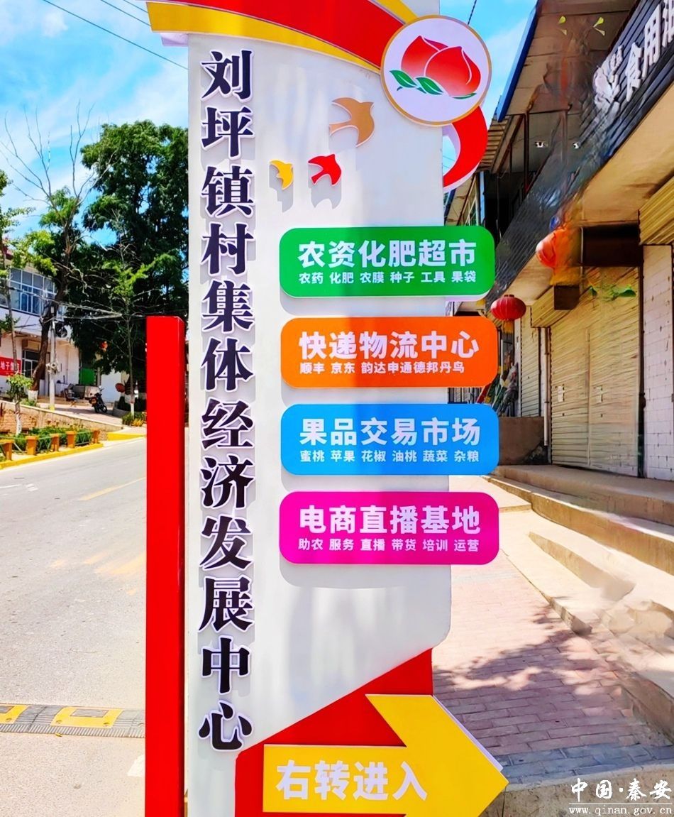 刘坪镇纪委书记冯璐介绍道:“刘坪镇村集体经济发展中心建筑面积2100平方米,是由21个村集体联合成立的股份经济合作社。通过电商直播、培养电商人才等方式推介刘坪镇农特产品,助力果农增收,进一步发展壮大村集体经济。”
