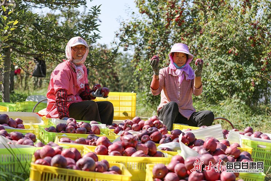 近日,在秦安县五营镇新润农业科技开发有限公司万亩苹果基地,红彤彤的苹果挂满枝头,工人们正忙着采摘、分拣、包装,准备将这份甜蜜送往全国各地。