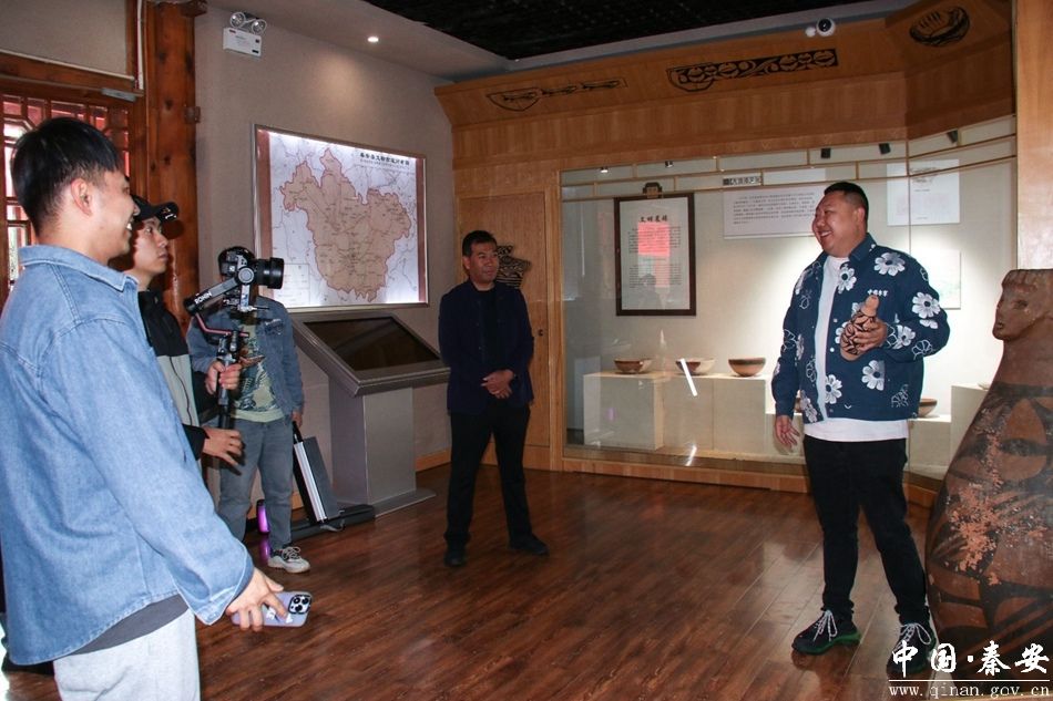 在秦安县博物馆、凤山景区、秦悦府酒店等地,网红达人“老姜夫妇”等边参观边拍摄,深切感受秦安八千年深厚的历史文化和美不胜收的深秋景色以及当地名特优小吃秦安辣子面、肚丝汤等美食,用高质量高品质视频讲好文脉传承的生动故事,创新拍摄秦安农产品、特色美食与历史文化相结合的视频,充分展现秦安农特产品的文化底蕴。