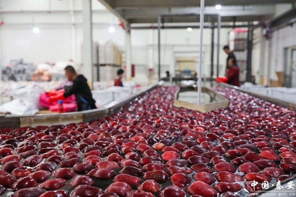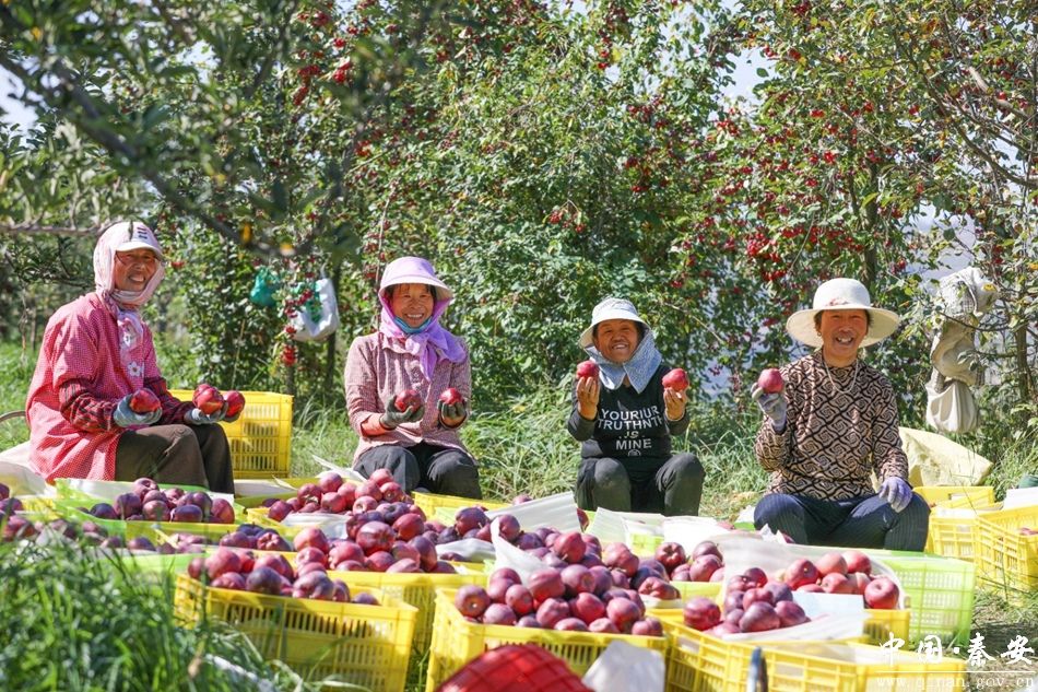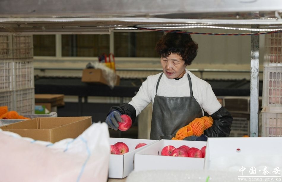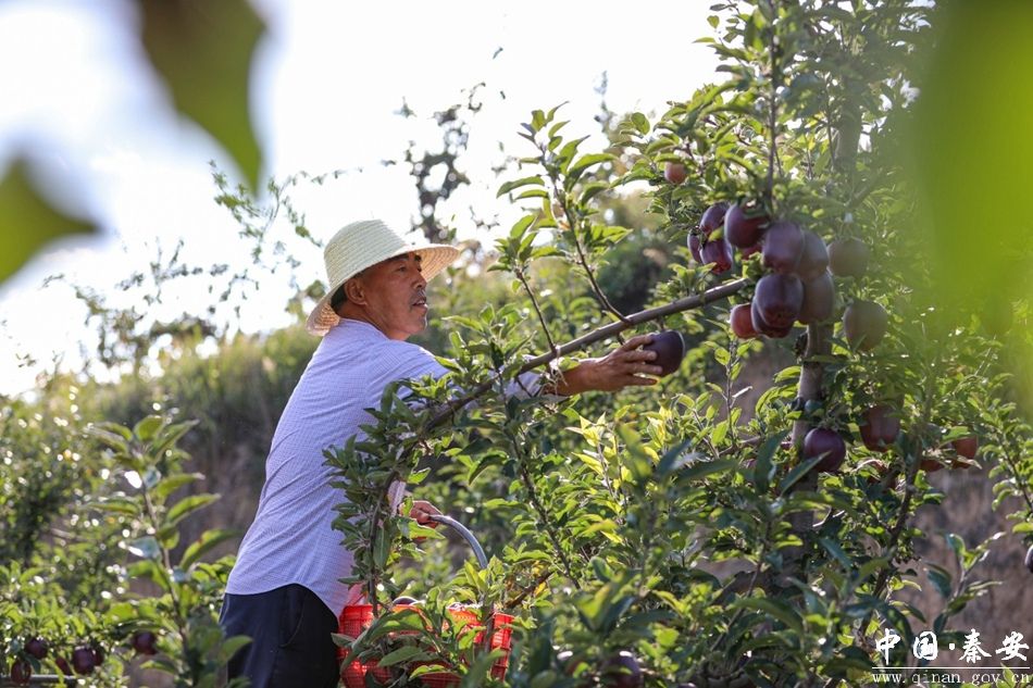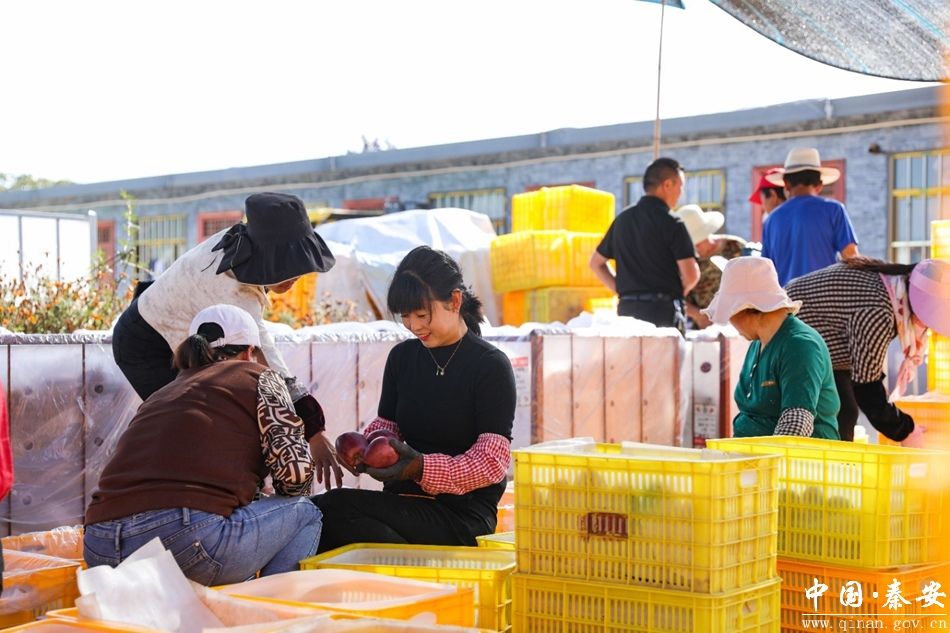 在秦安县五营镇新润农业科技开发有限公司1065亩苹果基地,红彤彤的苹果挂满枝头,工人们正忙着采摘、分拣、包装,准备将这份甜蜜送往全国各地。