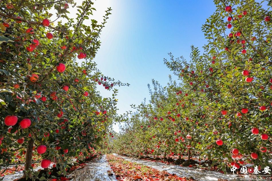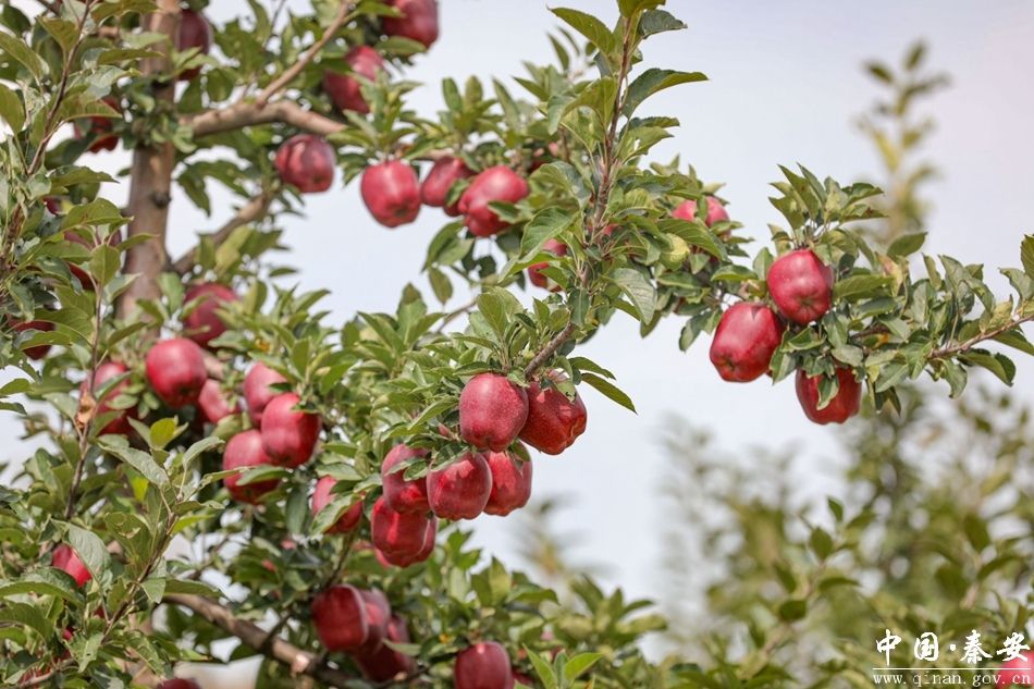 在秦安县魏店镇的果园,红彤彤的苹果挂满枝头,宛如一个个小灯笼,不仅照亮了果农们喜悦的面庞,也点亮了这个季节的色彩。
