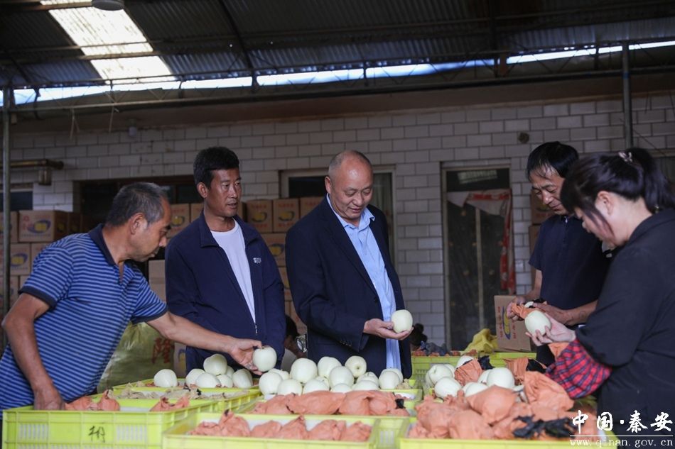 在秦安县叶堡镇,湖北客商洪金全在他的苹果收购点,筛选、包装着刚刚收购的苹果。今年已经他是第12年来秦安收购苹果。