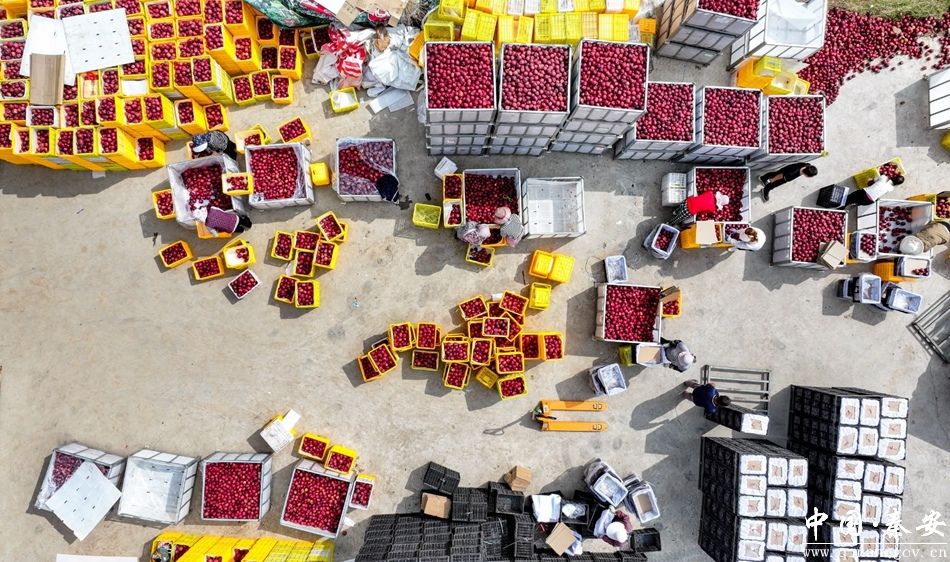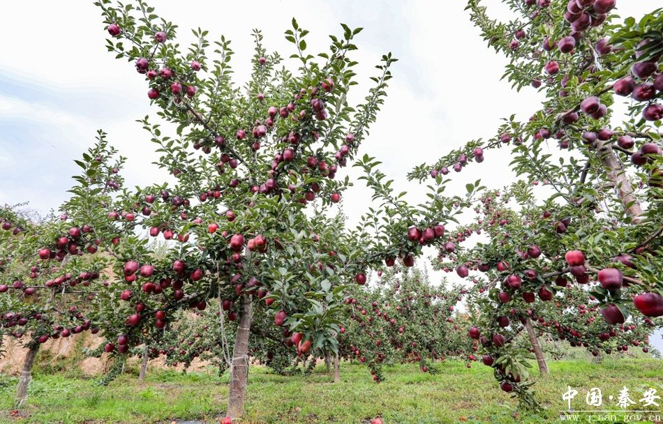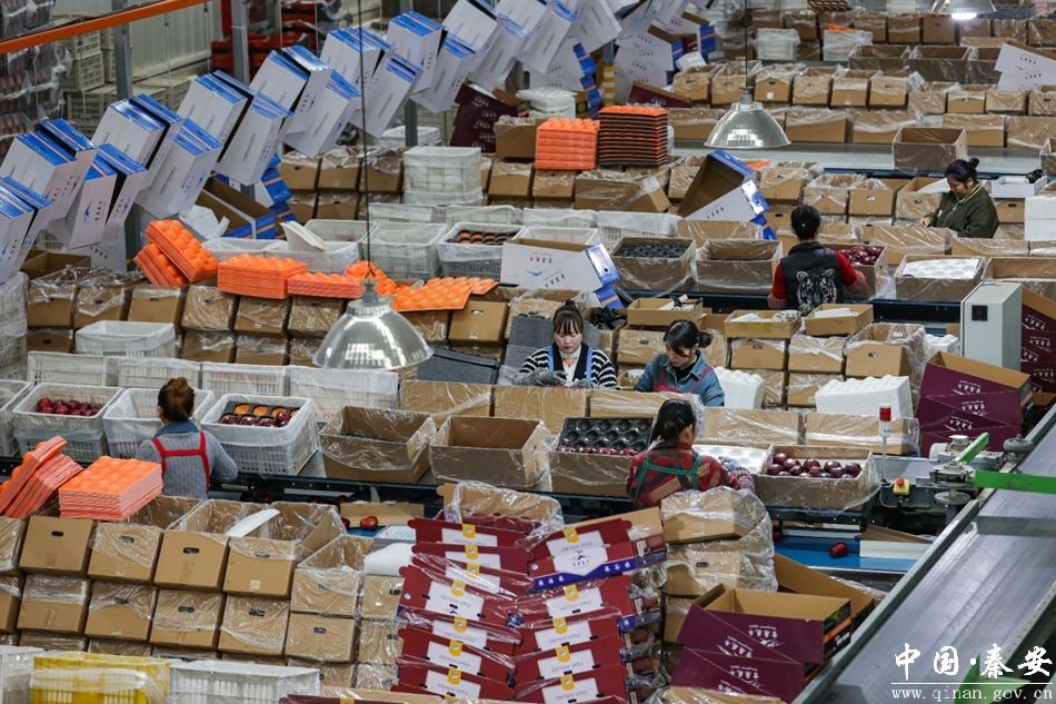 秦安县五营镇新润农业科技开发有限公司1065亩苹果基地,红彤彤的苹果挂满枝头,工人们正忙着采摘、分拣、包装,准备将这份甜蜜送往全国各地。