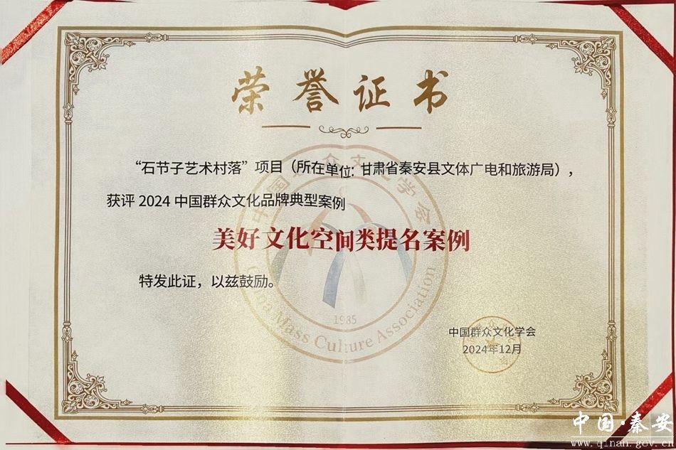 新天水讯 据秦安县融媒体中心消息 12月23日,2024中国群众文化品牌发展大会在上海市奉贤区九棵树未来艺术中心举行。经过层层筛选和激烈角逐,秦安县叶堡镇石节子艺术村落凭借其独特的艺术魅力和文化内涵,在全国各地90个群众文化品牌典型案例中脱颖而出,入选2024中国群众文化品牌典型案例——美好文化空间类提名案例。秦安县委常委、宣传部部长马昊莹在大会上做了宣传推介。
