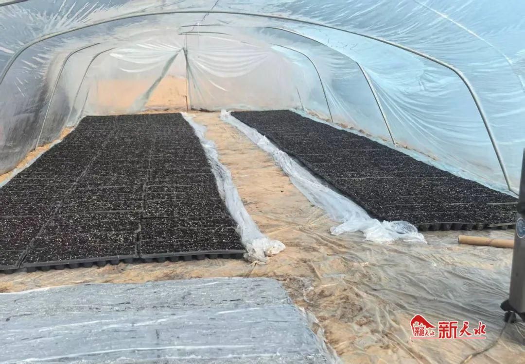 走进安川村白脆瓜种植基地,只见瓜农们正在有序进行育苗作业,首先在温床中对精心挑选的白脆瓜种子进行催芽处理,温床的温度经过精准调控,为种子提供了理想的萌发环境,待种子露白后,便小心翼翼地点种到育苗盘中,不一会儿,一排排密密麻麻的育苗盒就整整齐齐的摆放在了配备有六层保温膜、温度稳定保持在40度左右的大棚内,这一温度对于白脆瓜幼苗的培育来说是最为适宜的。目前最早的一批种苗已破土出芽。