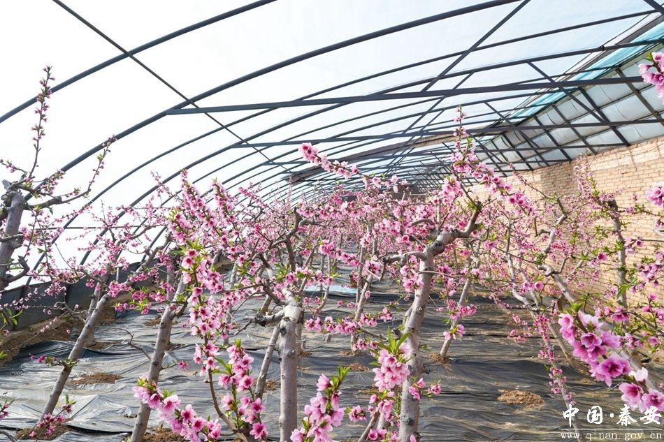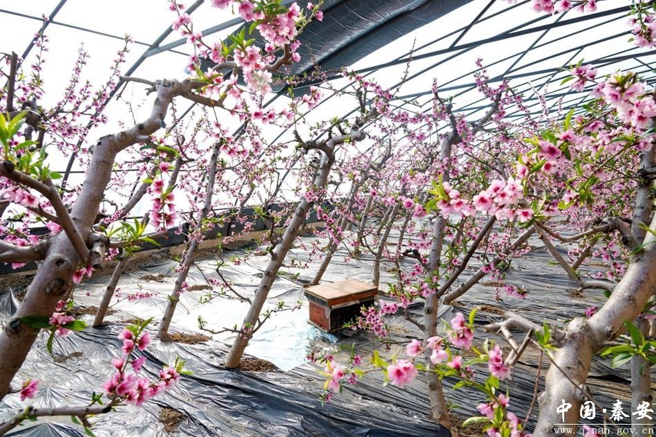 新天水讯 据秦安县融媒体中心消息 春节刚过,秦安县五营镇大地家园的大棚油桃基地里已是春意盎然,一株株油桃树上粉红色的花朵竞相绽放,娇艳欲滴,向人们传递着“春”的气息和丰收的希望。