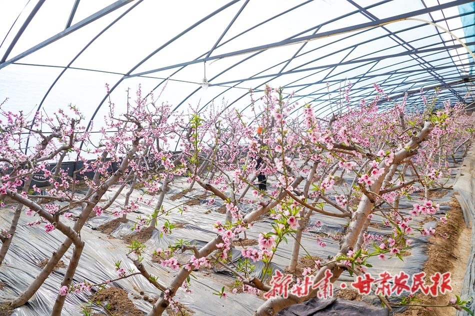 春节刚过,秦安县五营镇大地家园的大棚油桃基地里已是春意盎然,一株株油桃树上粉红色的花朵竞相绽放,娇艳欲滴,向人们传递着“春”的气息和丰收的希望。