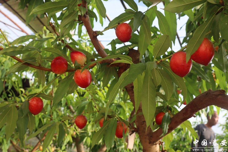 新天水讯 据秦安县融媒体中心消息 人勤收获喜,硕果满枝头。近日,秦安县兴国镇依仁村的油桃基地迎来丰收季。温室大棚内绿意盎然,红彤彤的油桃挂满枝头,颗颗鲜嫩饱满,散发着诱人光泽,令人垂涎欲滴。