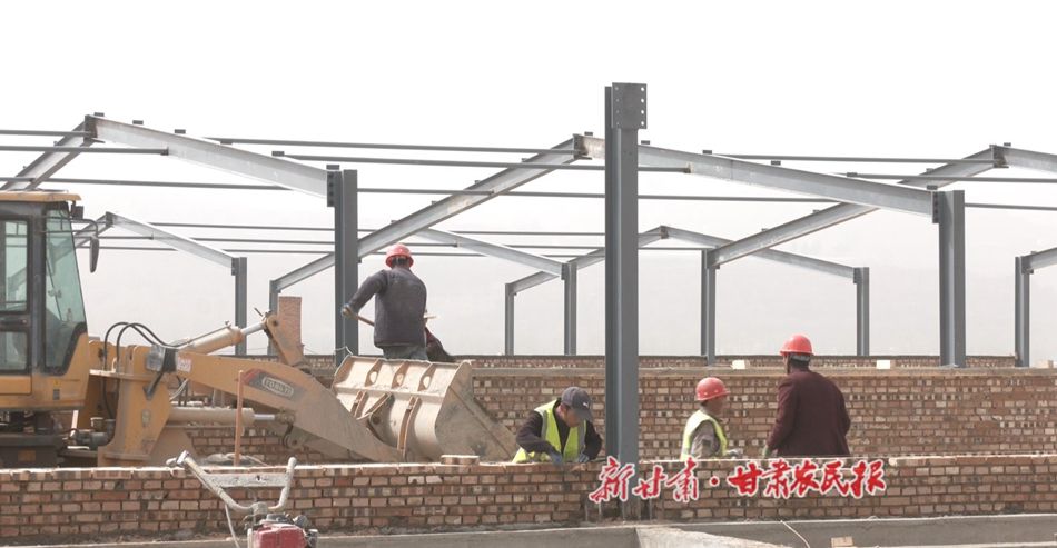 在陇城镇标准化养殖场建设项目施工现场,工人们正在加紧施工,建设现场井然有序,一派热火朝天的建设场景。