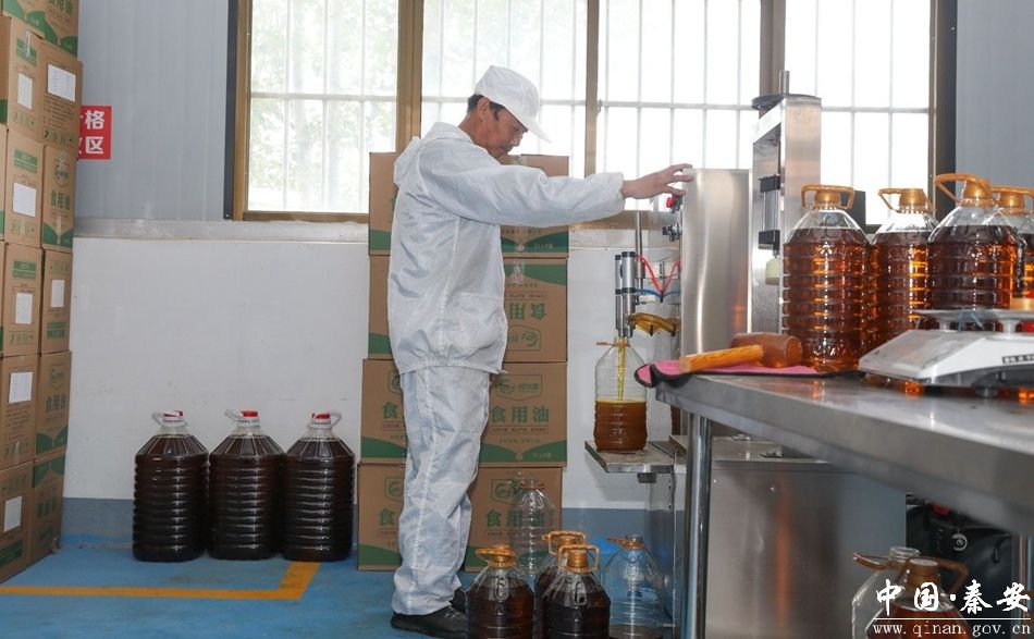 在中山镇蔚文村占地800平方米的“强村”公司车间内,全自动榨油机高效运转,胡麻油与菜籽油缓缓流入储油罐。