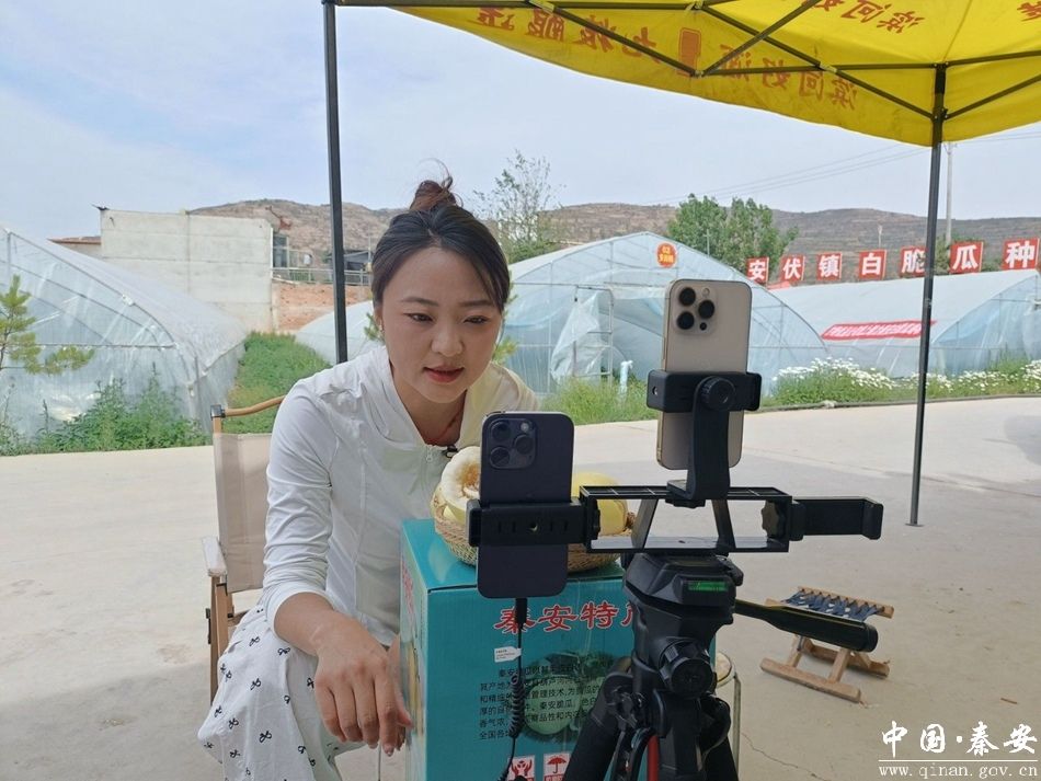 “安川村种植白脆瓜历史悠久,采用传统农耕与现代技术结合的种植方式,种出的白脆瓜果肉脆甜、汁水充足。”在安伏镇安川村白脆瓜种植基地,主播们正通过直播平台,向全国网友展示白脆瓜从种植到包装的全过程。