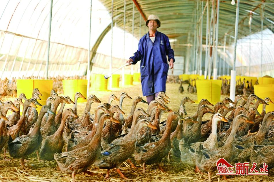 当地农民在蛋鸭养殖基地工作,学了技术,有了收入。