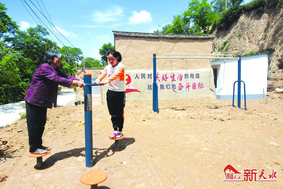 在杨菊花家门口,村民们正在加紧修建文化广场,土地已经平整,健身器材已经安装好,只差硬化路面,路边的太阳能路灯去年已经安好,村上的村级党建服务中心已经修建完毕,村卫生室、村文明实践中心等一应俱全。