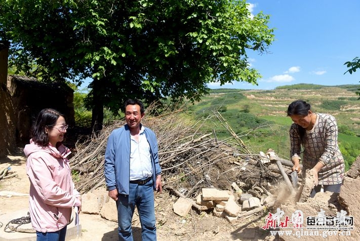 来到张芳国的家里,张芳国的妻子杨彩荣正在拆除院子的围墙。“上边的新房子马上就要盖好了,今天开始盘炕了但是缺土坯,我这就赶紧拆一些送上去把炕盘好。”杨彩荣一边忙活着拆土坯,一边向施林敏打着招呼。
