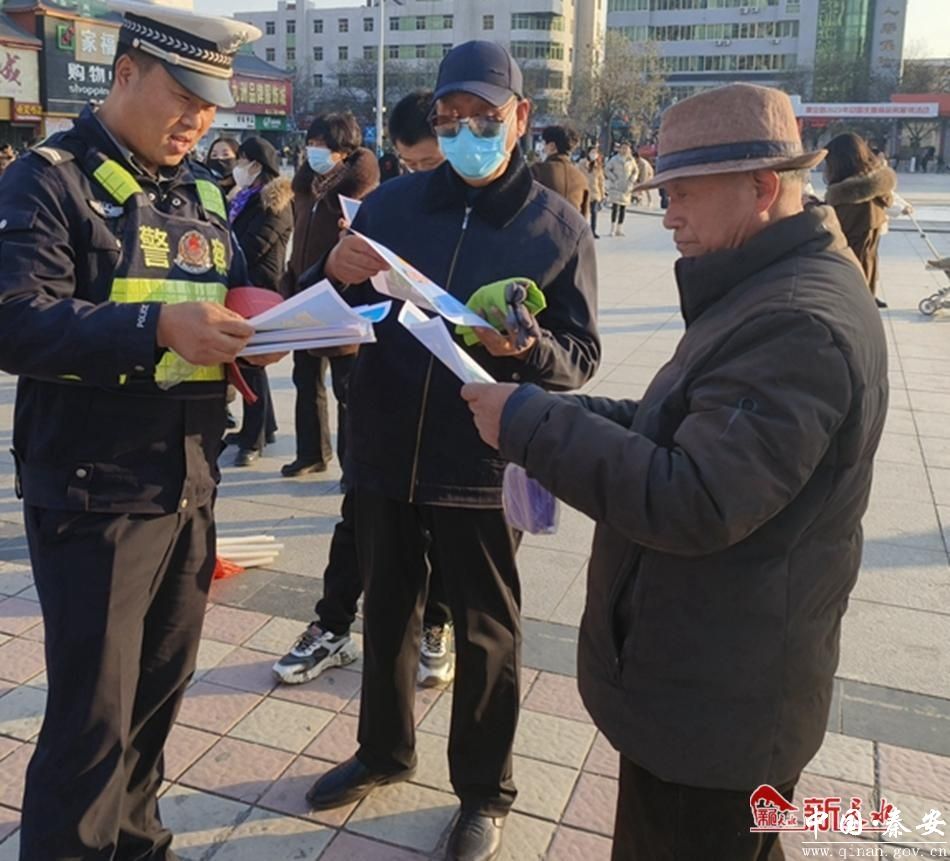新天水讯 12月2日,在“全国交通安全日”当天,秦安县公安局交警大队联合县教育局、执法局等单位,开展了以“文明交通 你我同行”为主题的交通安全宣传活动。