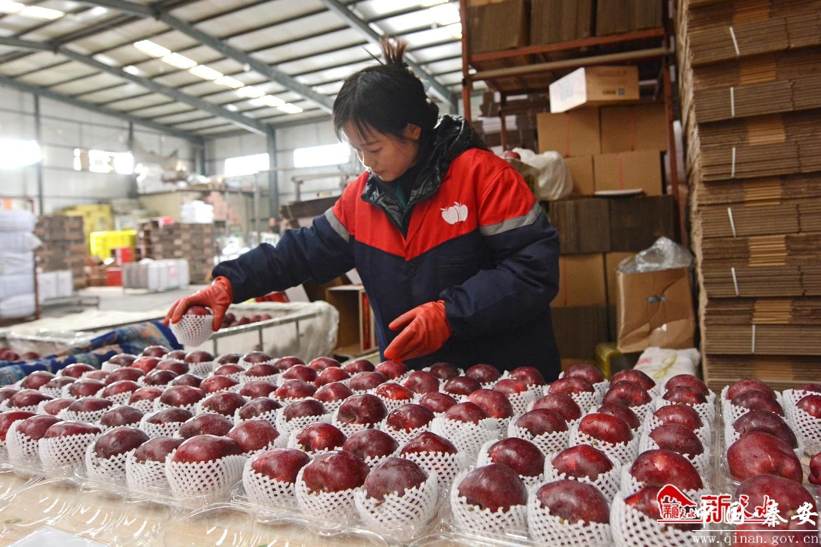 在秦安雪原果品有限责任公司的加工车间里,一颗颗红苹果“列队穿梭”在现代化分选线上,经过全自动水洗、烘干、全局扫描等多个环节,被分装在规格统一的包装箱中。
