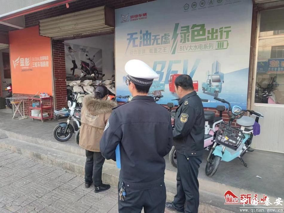 新天水讯 12月27日,秦安县公安局交警大队联合县市场监督管理局至电动车售卖点开展专项检查。