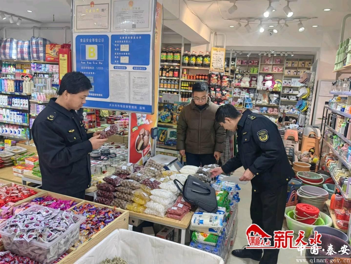 新天水讯【通讯员 王顺芳】连日来,秦安县市场监管局聚焦节日消费特点,集中力量在全县范围内开展为期40天的食品安全隐患大排查、大整治专项行动,切实维护好2024春节前食品市场秩序,全力守护广大人民群众“舌尖上的安全”。