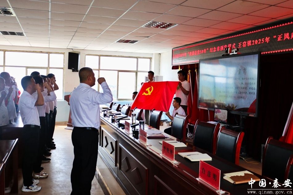 重温入党誓词铭记初心,党徽闪耀映照使命。王窑镇全体党员面向鲜红的党旗,整齐列队,庄严地举起右手,重温入党时的铮铮誓言。一句句铿锵有力的誓言,回荡在活动现场,表达了党员们对党的无限忠诚和为党的事业奋斗终身的坚定决心。
