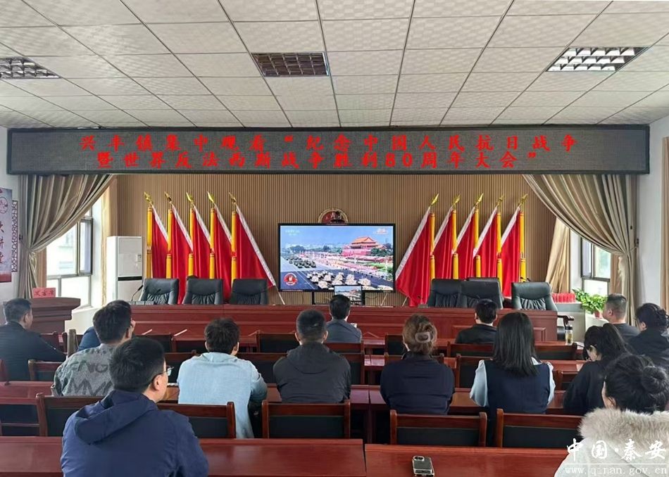 9月3日,兴丰镇组织全镇镇村干部集中观看纪念中国人民抗日战争暨世界反法西斯战争胜利80周年大会。