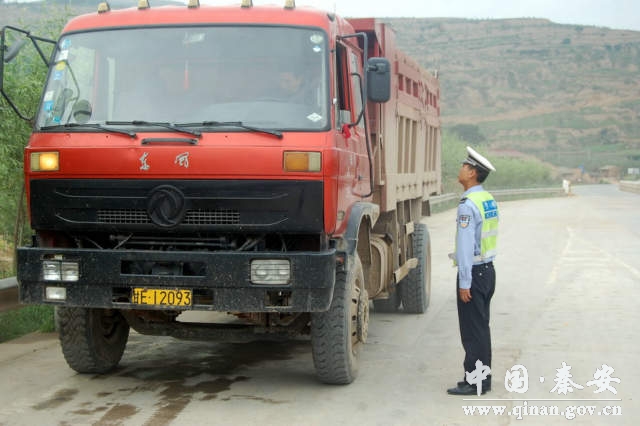近期,随着宝兰客运专线的全面开工,秦安辖区大型工程运输车辆剧增,为预防重特大交通事故,营造平安交通秩序,秦安交警大队结合目前开展的货车违法行为专项整治行动,集中对天巉公路秦安段、叶莲公路、城区滨河路一带混凝土、砂土运输车超速超载等违法行为进行了集中治理,为广大群众安全出行创造了平稳有序的道路交通环境。