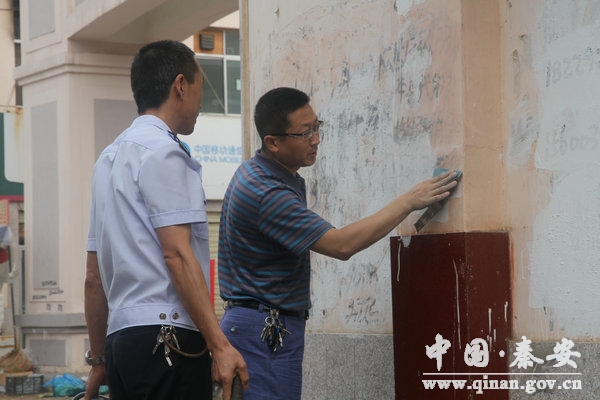 秦安县地税局卫生责任区域是城区的一段商业街,人流量大,群众随意丢弃的垃圾多,卫生死角脏乱,尤其是各类违法广告张贴物和喷涂物多。然而在清扫整治活动现场,局领导身先士卒,全体干部勤劳肯干,他们不俱脏、不怕累,扫的扫,铲的铲,捡的捡,刷的刷,干部们一个个干劲十足,挥舞扫把,整个劳动场面热火朝天。在经过两个多小时仔细认真的清理后,城市“牛皮癣”得到彻底铲除,生活垃圾被清除干净,卫生责任区域焕然一新,局域环境整洁而干净。