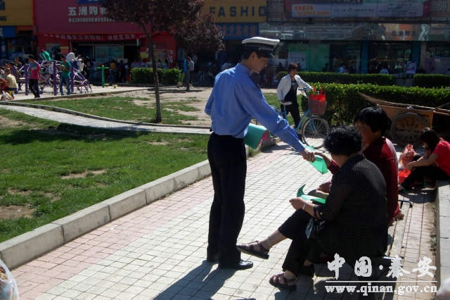 为全面推进“文明交通行动计划”和交通安全“五进”活动,进一步增强辖区社区居民的文明交通意识,最大限度地预防和减少交通事故,秦安县交警大队以“交通安全示范社区”创建活动为契机,结合“大排查大教育大整治”货车违法行为专项行动,积极开展“文明交通进社区”活动,倡导居民“文明出行、平安出行”理念,收到了良好效果。
