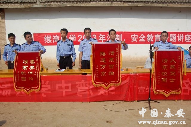 最后,学生代表做了表态发言,缑湾中学校长将一面书写有“情系百姓、路通万家”的旌旗送到了大队民警手中,充分肯定了大队对边远山区交通安全的重视。