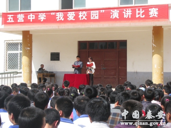 为了“净化校园环境,营造教书育人的良好氛围”,2013年4月11日,五营中学举办了以“我爱校园”为主题的师生同台演讲比赛。