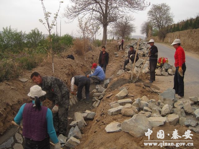 四月的秦安,天空清澈,白云游荡。在“百里生态文化长廊建设”工程之一的秦安县解放路至凤山公园道路改建工程现场,公路建设者们正在衬砌边沟,安装路缘石,一派忙碌景象。