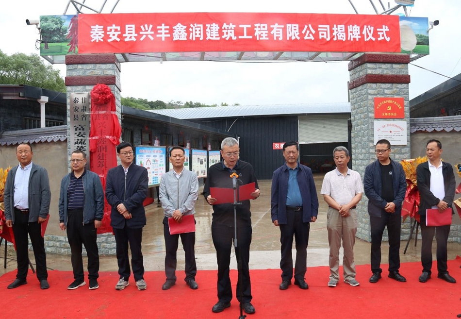 7月3日,秦安县兴丰鑫润建筑工程有限公司揭牌仪式在兴丰镇朱李村举行,县委常委、统战部部长扇忠瑜,县人大常委会副主任吴建忠,县委组织部、县农业农村局、县工信局相关负责人,兴丰镇相关负责人和干部共计80余人参加活动。
