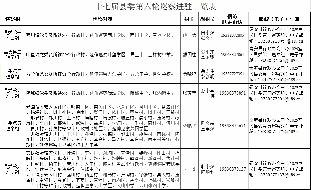 现将县委第六轮巡察网络监督举报平台、县委各巡察组信访电话、邮政信箱公布如下:
