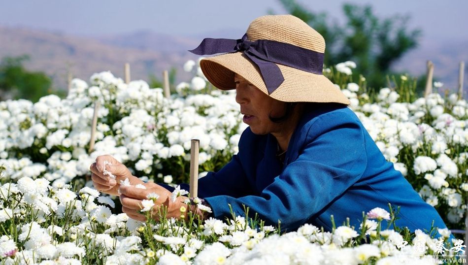 “眼下正是菊花采摘期,每天能挣100块钱左右,在家门口务工赚点钱补贴家用。”村民王女士一边忙着手中的活一边开心地说道。