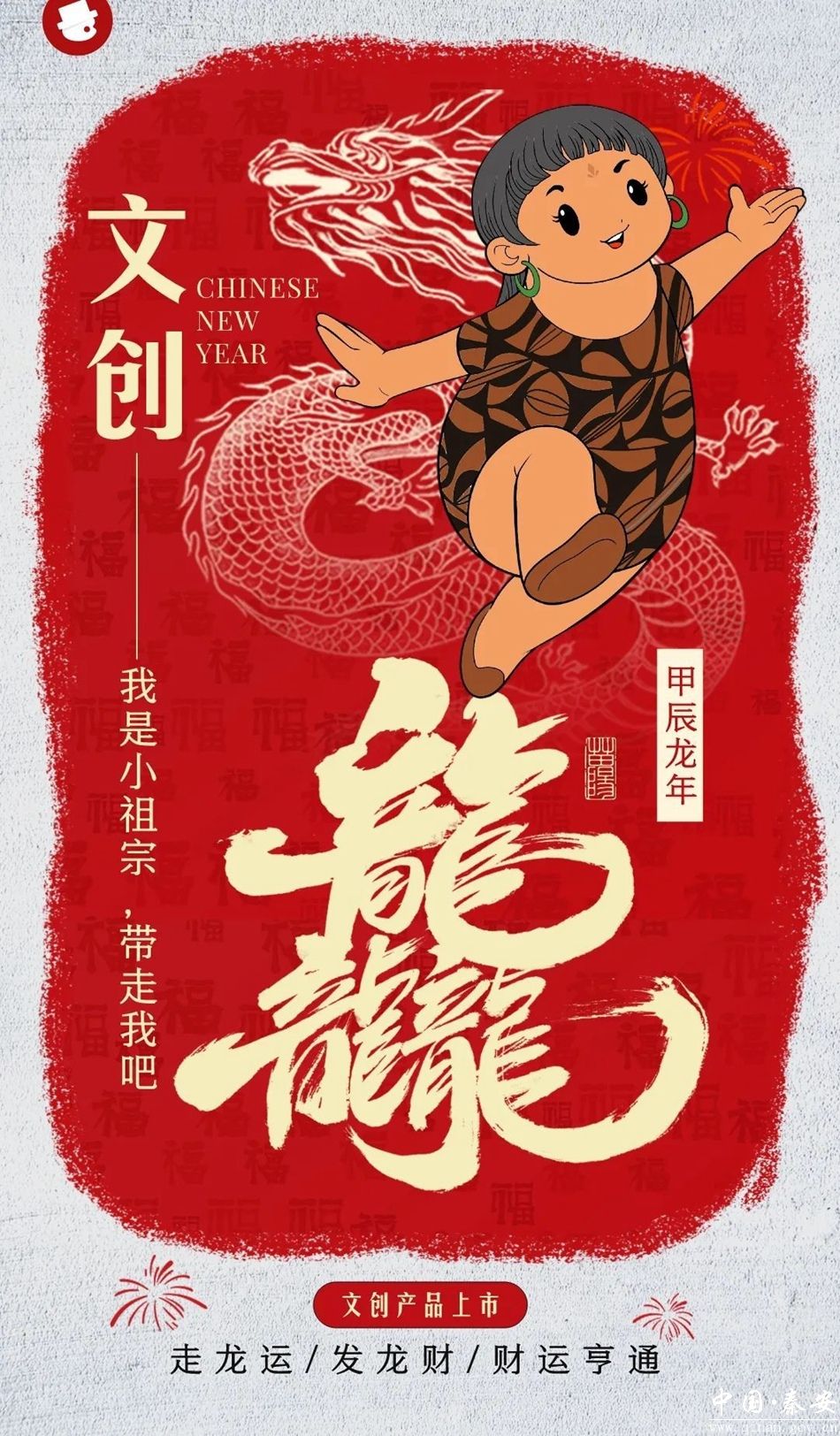 “小祖宗”作为大地湾文化的亲善大使,以其活泼可爱的形象生动诠释了八千年前大地湾遗址中蕴含的原始艺术魅力与智慧光芒。它身披寓意吉祥的龙鳞元素,象征着龙年的繁荣昌盛,将远古文明与现代审美完美融合。在天水古城麻辣烫吃货节一经亮相,其活泼生动的形象便引得游客直呼可爱,纷纷驻足观看,拍照打卡,以至于冲上热搜,让全国人民看到了秦安县满满的诚意。