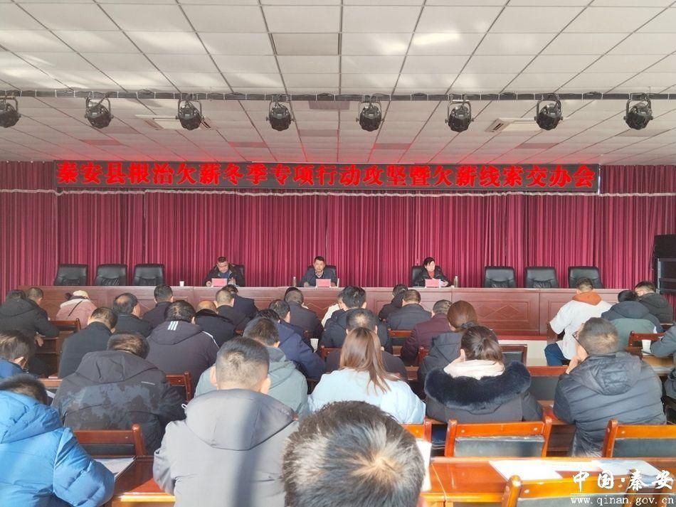 新天水讯 据秦安县融媒体中心消息 12月20日,秦安县召开全县根治欠薪冬季专项行动攻坚暨欠薪线索交办会。县政府根治拖欠农民工工资工作领导小组办公室、各成员单位和在建项目负责人及劳资员共60余人参加会议。
