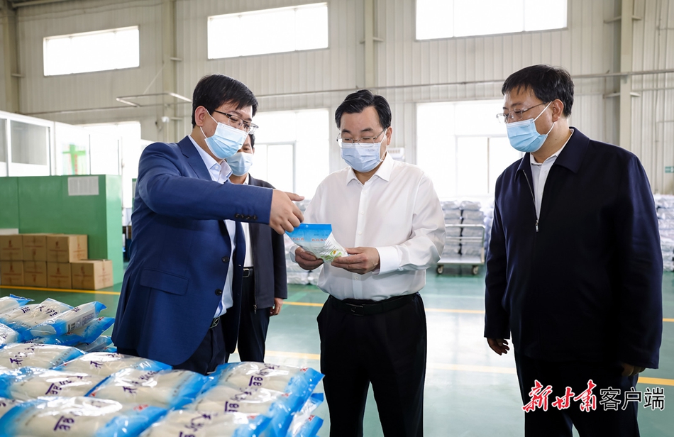 在胶州·通渭金银花健康产业园、飞天食品有限公司,胡昌升调研了金银花、马铃薯等产业发展情况,强调要坚持引育并举做强龙头企业,推动农产品精深加工,完善联农带农机制,让农民深度嵌入产业链中、获得更多收益。要不断加强技术创新,坚持市场导向开发多元产品,依托电商平台扩大营销,提升市场占有率和品牌影响力。要毫不懈怠规范食品企业生产管理,优化工艺流程,强化食品安全质量控制和检验,确保企业持续健康发展。