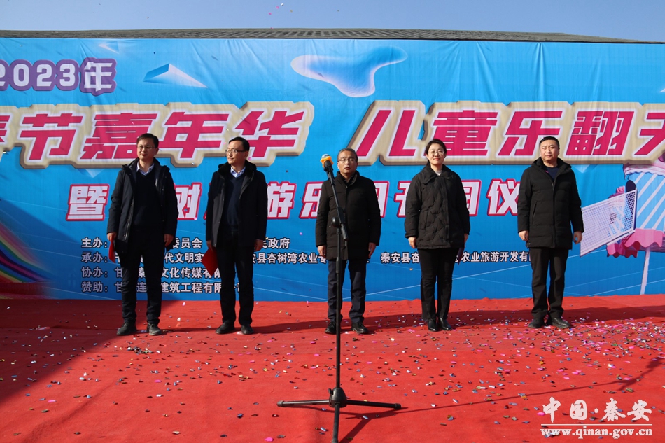 1月9日,秦安县千户镇举办2023年“春节嘉年华 儿童乐翻天”暨杏树湾游乐园开园仪式。县委副书记姚建国,县委常委、宣传部部长常乐,县政府副县长张涛涛及县文旅局负责人,千户镇全体领导班子成员、镇村干部职工及群众代表200余人参加开园仪式。
