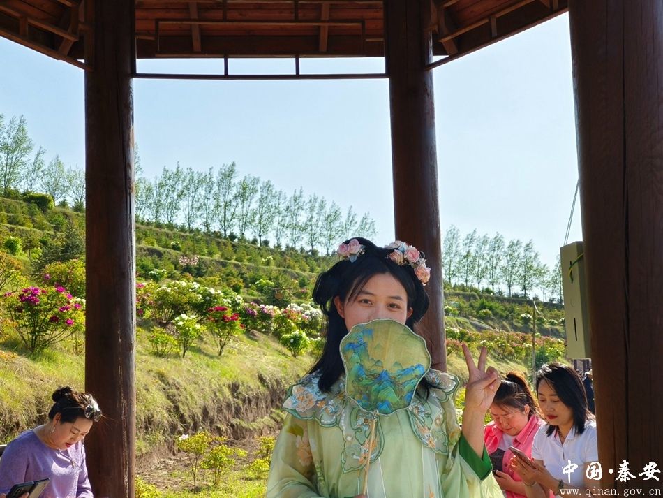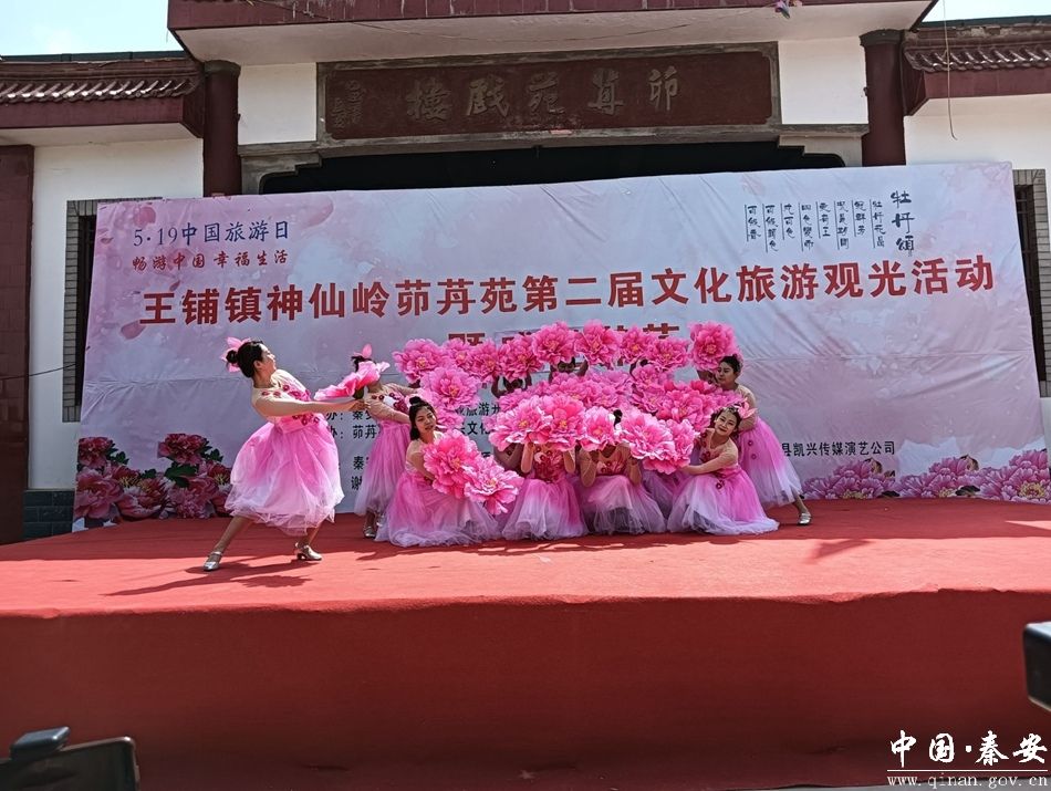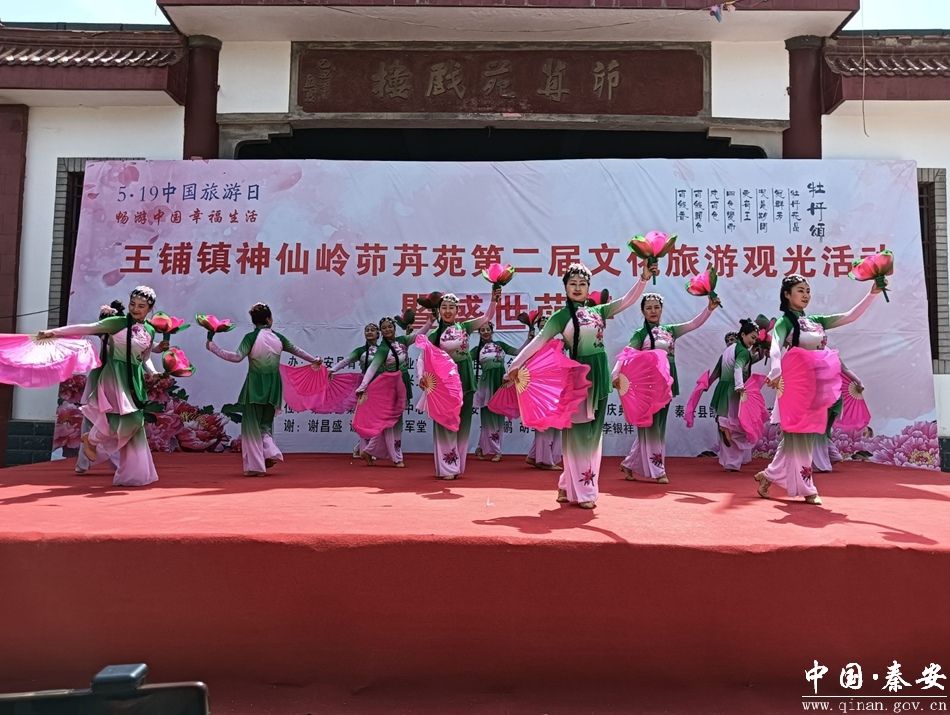 此外,茆䒟苑内建有观光凉亭等配套设施,可供游人休息乘凉。王铺镇还组织开展了文艺旅游观光之盛世、舞动、打卡茆丹苑系列活动,有不少文艺小分队、表演爱好者前来登台演出,游客在欣赏万千盛开的花朵的同时,还能一睹秦安小曲、腊花舞、歌曲舞蹈等文艺节目的风采。在茆丹苑内,有的身穿汉服穿梭在花间拍照打卡,有的通过美妙的歌声、曼妙的舞姿讴歌新时代、赞美新生活,大家陶醉其中,流连忘返。