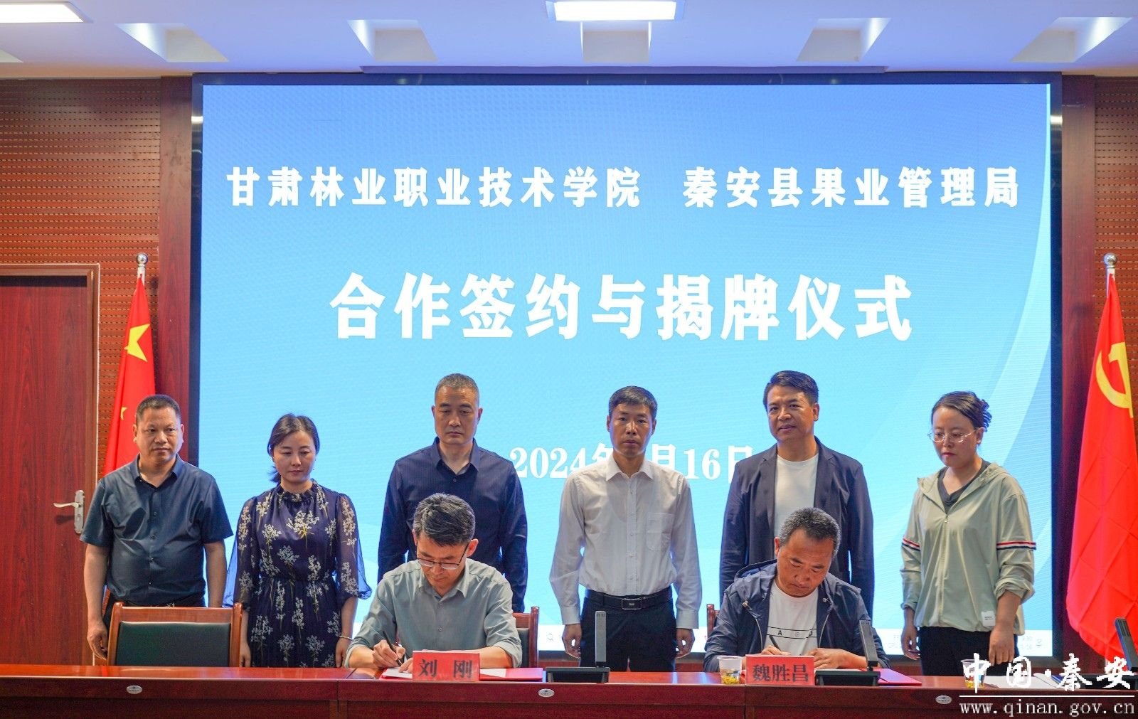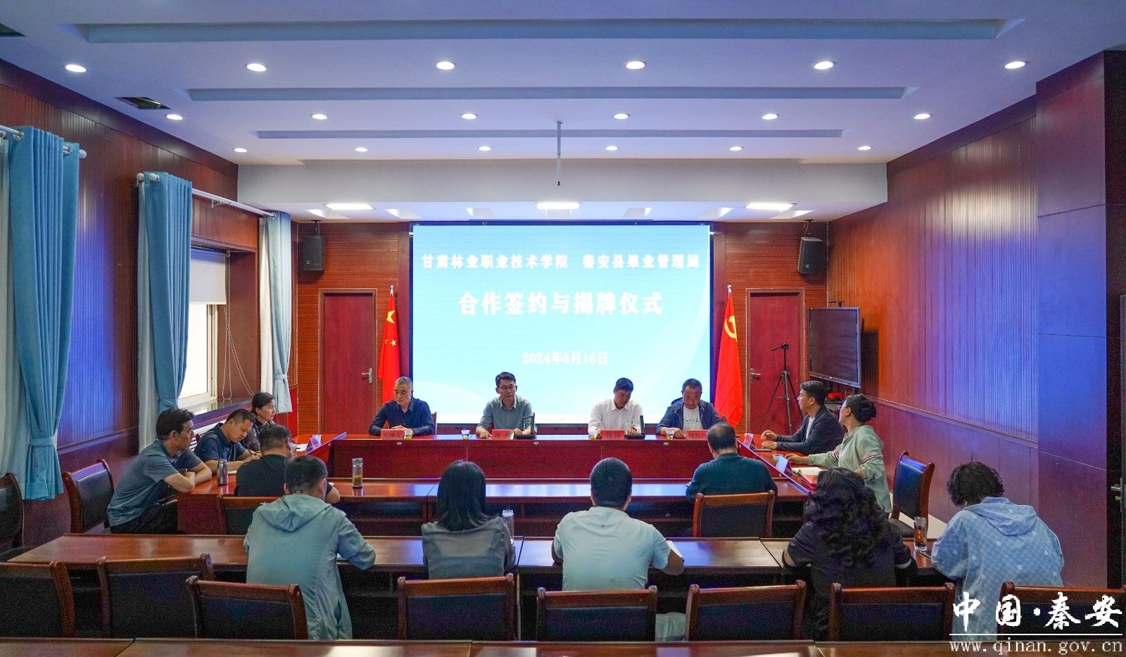 5月16日,甘肃林业职业技术学院与秦安县果业管理局举行了合作签约暨揭牌仪式。甘肃林业职业技术学院党委委员、副院长刘刚,秦安县委常委、县政府副县长杨涛,甘肃林业职业技术学院、秦安县果业局相关人员参加仪式。