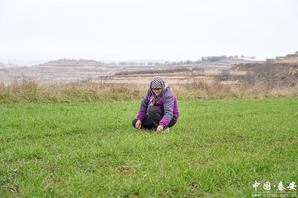 时值初冬,在秦安县王铺镇马山湾流域的广袤农田里,一行行嫩绿的冬小麦如绿色地毯般铺展开来。麦苗整齐均匀、长势喜人,处处焕发着勃勃生机。