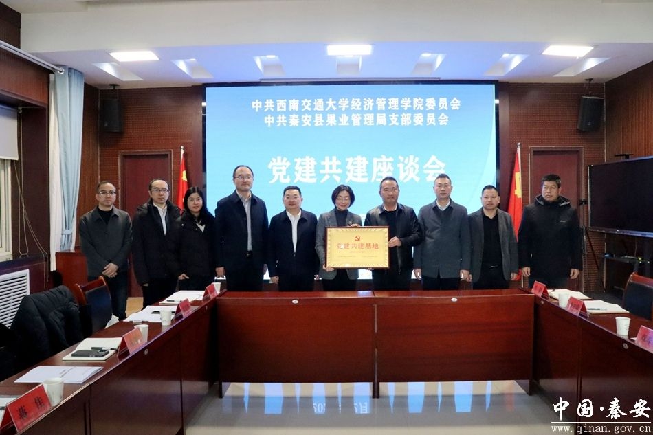 考察期间,西南交通大学经济管理学院还与县果业局开展了党建共建活动,并为“党建共建基地”进行了挂牌。