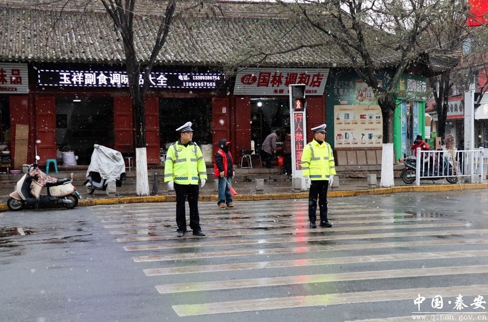 雪景虽美,却给道路交通带来不小考验。为保障市民出行安全,秦安县公安局交管大队提前启动恶劣天气应急预案,交警全员上岗,在城区各主干道、十字路口、学校周边等重点路段增派警力,指挥疏导交通。在成纪大道路口,秦安县公安局交管大队城区中队中队长魏军正引导车辆缓慢通行。“目前来看,城区主要道路通行还算顺畅,不过部分乡村路段积雪比较厚,建议大家尽量绕行。我们也会加强巡逻频次,有任何路况问题,都可以随时联系我们交警部门。”魏军表示,交管部门已发布了交通安全提示,提醒过往车辆注意安全。