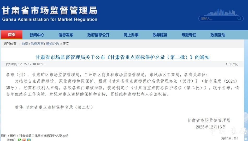 据了解,建立省级重点商标保护名录,是甘肃省强化知识产权全链条保护、优化营商环境、助推自主品牌发展的创新举措,名录对知名度高、市场竞争力强、易受侵权的重点注册商标实施动态管理和协同保护。秦安两件商标同时入选,折射出其在先进制造与特色农业领域已形成显著品牌优势和市场竞争力的双重突破。
