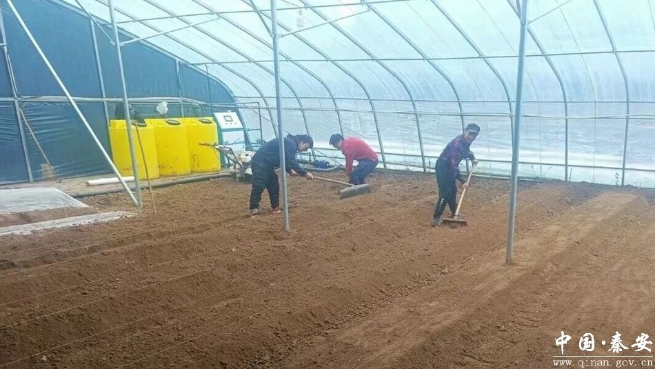 在一座冬暖棚内,几名村民正手持农具翻耕土壤,身后的腐熟有机肥堆放整齐,等待与土壤充分混合。“冬季种植,土壤和温度是关键。我们按照技术要求,先对土壤进行深耕晾晒,再撒施腐熟的农家肥和专用肥,调节土壤肥力和透气性,还会用专门的药剂进行消毒处理,避免病虫害滋生。”冯沟村种植户冯克红说。与此同时,在已经完成种植的棚内,油菜、草莓等幼苗长势喜人,种植户正仔细检查幼苗长势,做好温湿度调控等工作,确保棚内温度、光照、湿度等环境条件符合果蔬生长需求,为幼苗定植后的生长保驾护航。