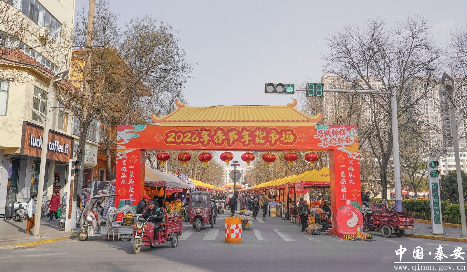 金马迎春购年货,福市纳祥聚欢颜。随着春节临近,秦安县兴国文化广场2026年春节临时便民年货市场内人头攒动、热闹非凡,春联福字、吉祥挂饰、干果副食、书画作品等年货琳琅满目,喜庆祥和的新春氛围扑面而来,浓浓年味满溢市集。