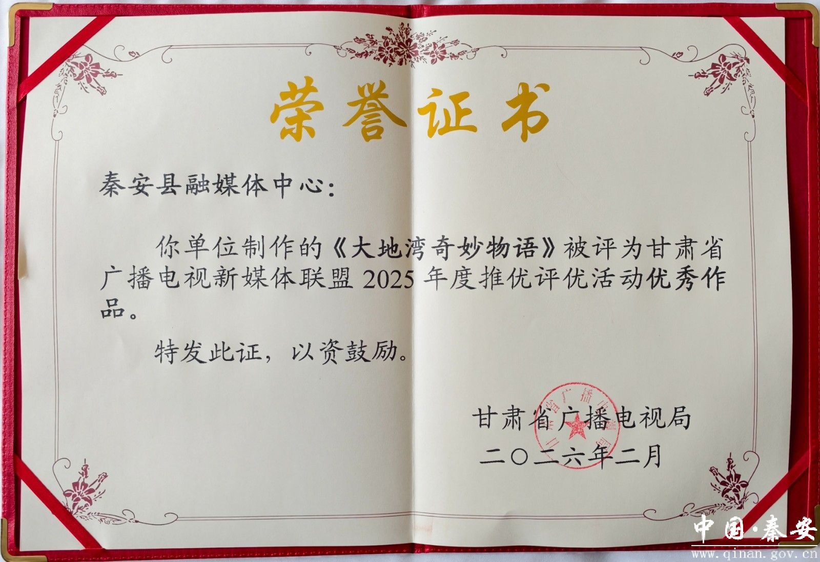 近日,甘肃省广播电视局公布2025年度广播电视新媒体联盟推优评优结果。秦安县融媒体中心创作的短视频《大地湾奇妙物语》凭借鲜明的文化特色与创新的传播表达,从众多参评作品中脱颖而出,成功入选“优秀作品”名录。